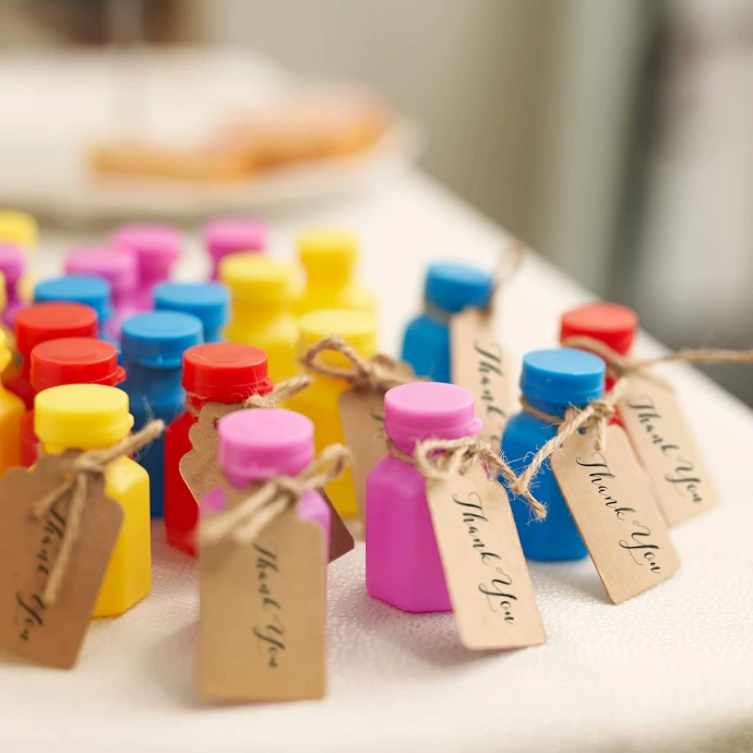 Un grand classique indémodable qui émerveille petits et grands. Ces mini bulles de savon colorées sont parfaites pour apporter de la magie, du rire et du mouvement lors des anniversaires, kermesses, mariages et fêtes en plein air.